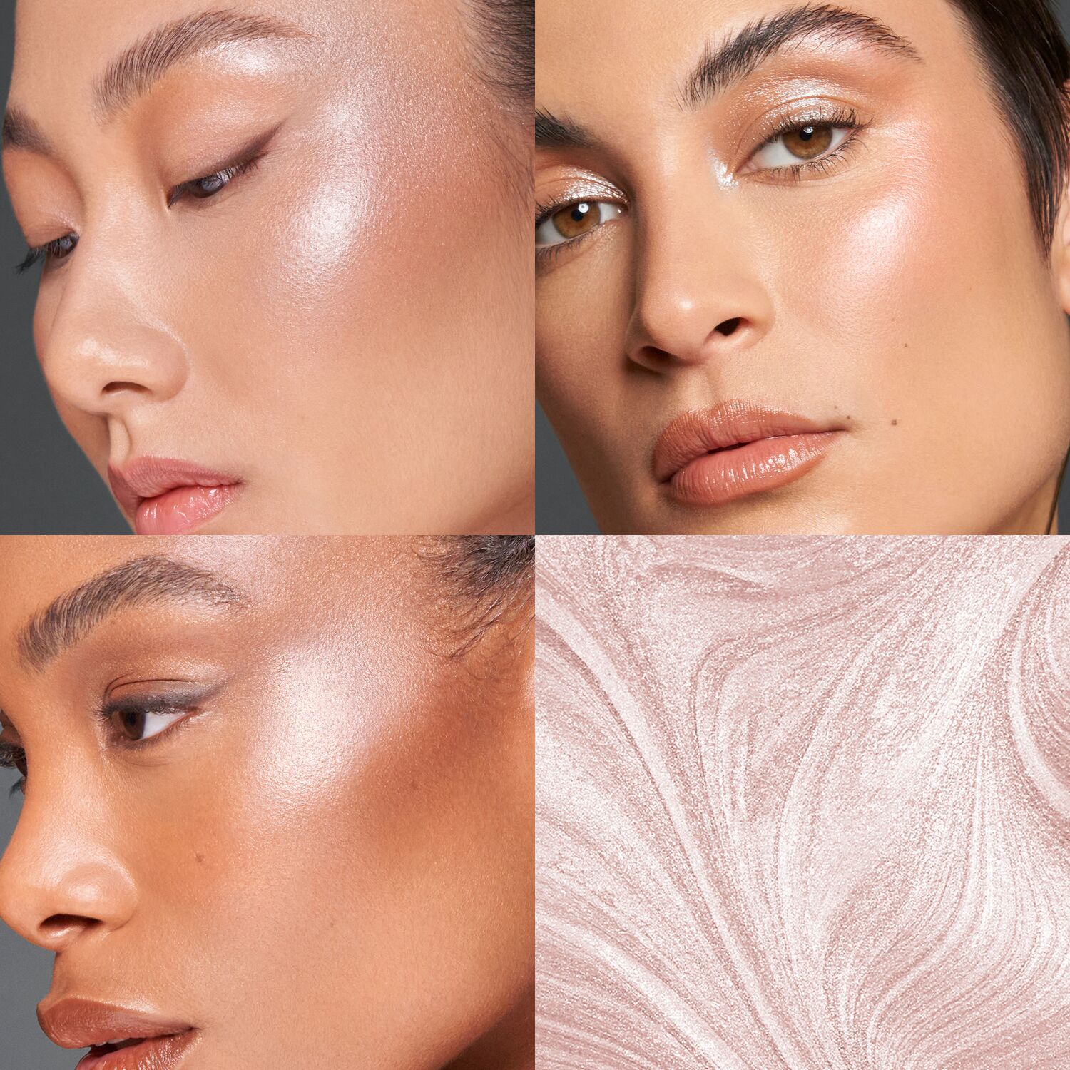 While the Custom Enhancer Drops are a liquid highlighter, the Custom Enhancer Palette includes three luminous powder shades.