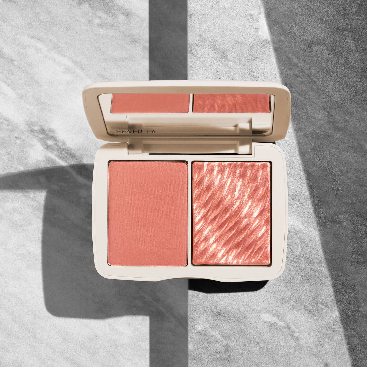 This duo features two finishes for a custom flush: a soft matte blush as well as a luminous shimmer shade.