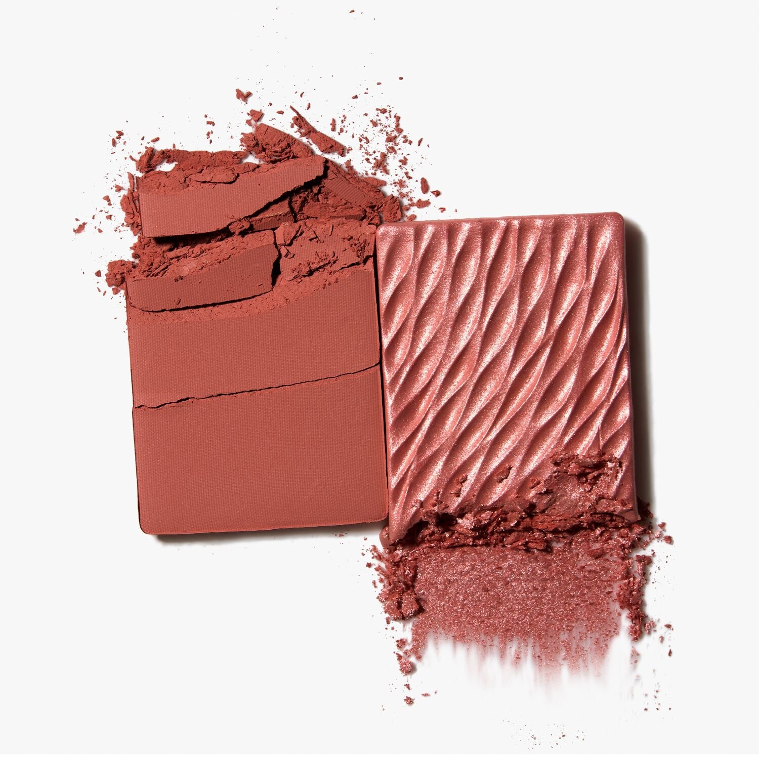 This duo features two finishes for a custom flush: a soft matte blush as well as a luminous shimmer shade.