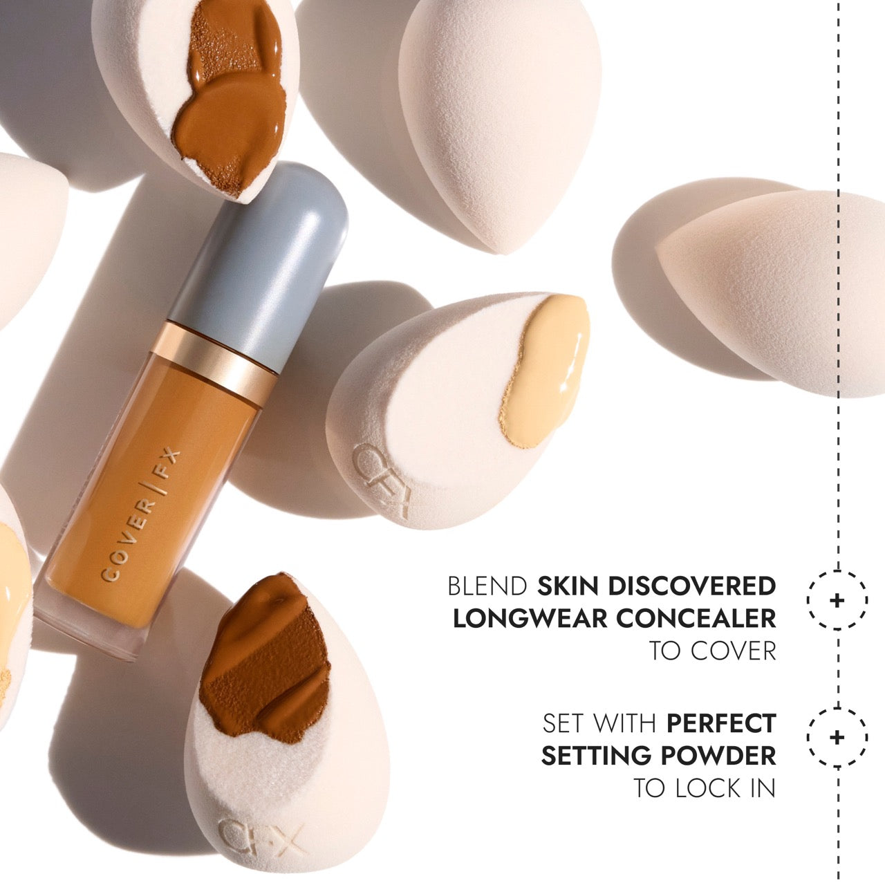 This sponge is best used dry to allow proper "baking" with the velvet puff. Use the sponge side to blend concealers over the face in a bouncing, patting motion and building coverage as desired. Use the precision tip to focus coverage in the under eyes or other hard-to-reach areas. Dip the velvet puff side of the sponge into loose or pressed setting powders to saturate with product, then gently press and roll the puff onto your skin to set makeup. If "baking" is desired, dust off any excess powder with a fluffy brush.