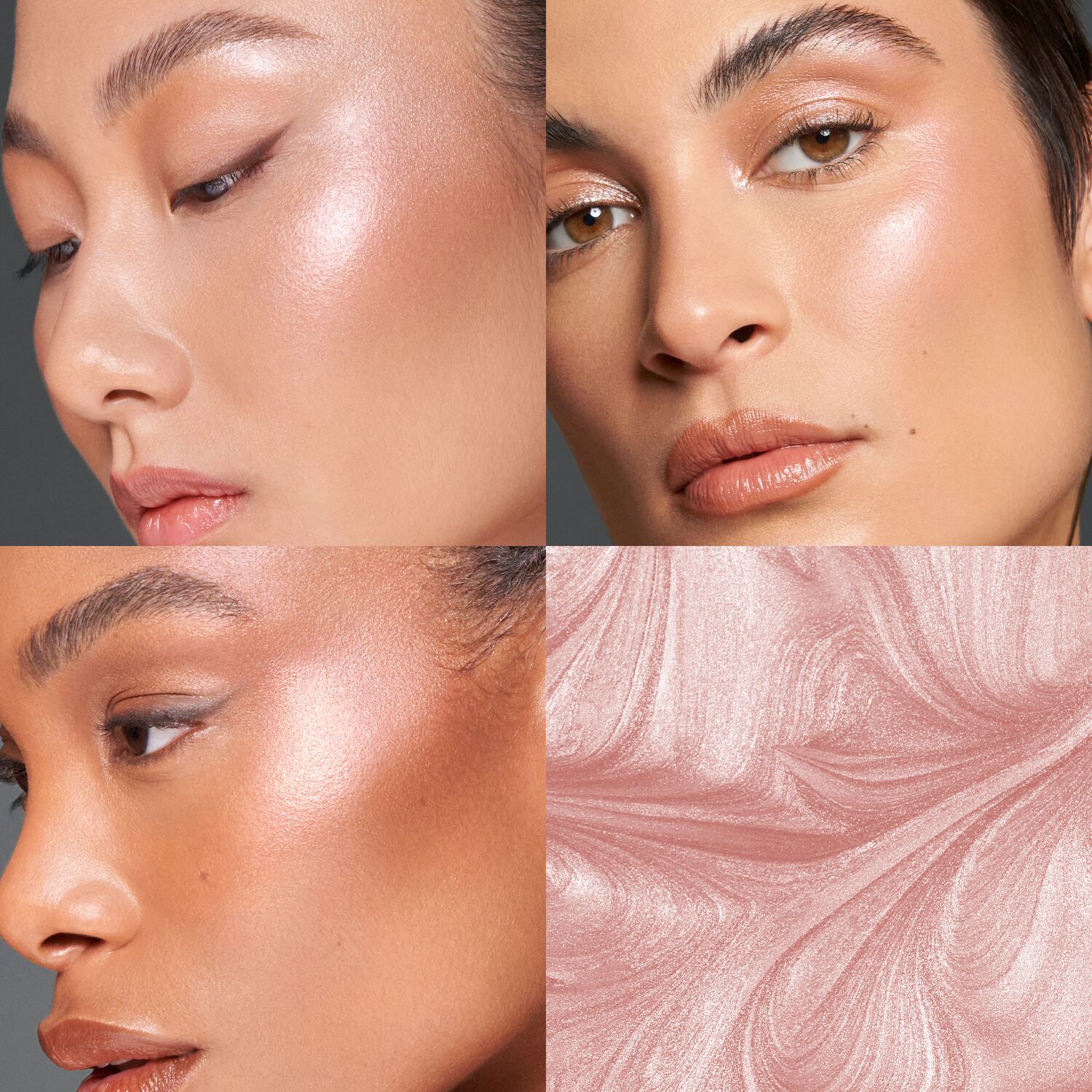 While the Custom Enhancer Drops are a liquid highlighter, the Custom Enhancer Palette includes three luminous powder shades.