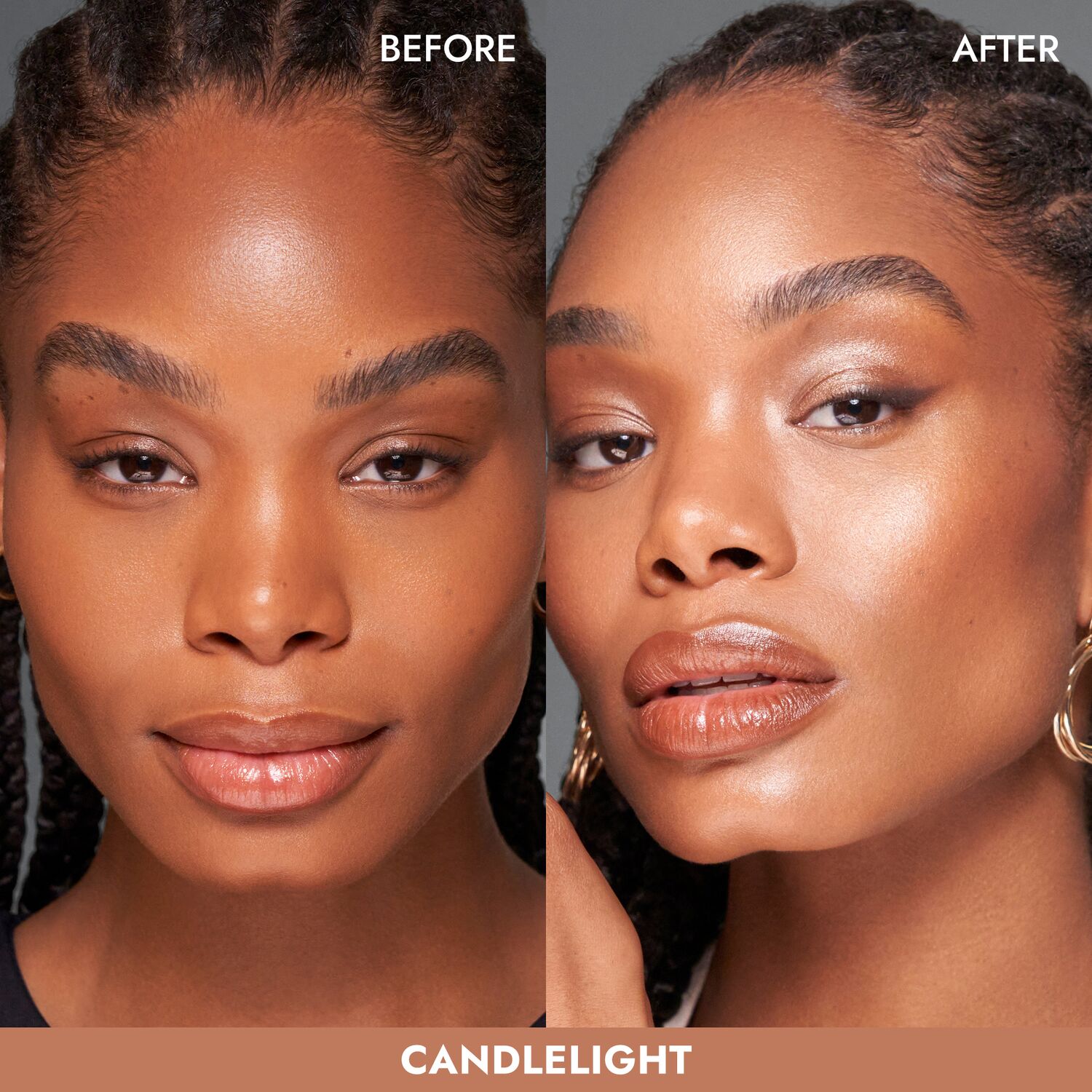 Apply to clean, moisturized skin along with your foundation. If using as a high-impact highlighter, lightly brush onto target areas and then build as desired.