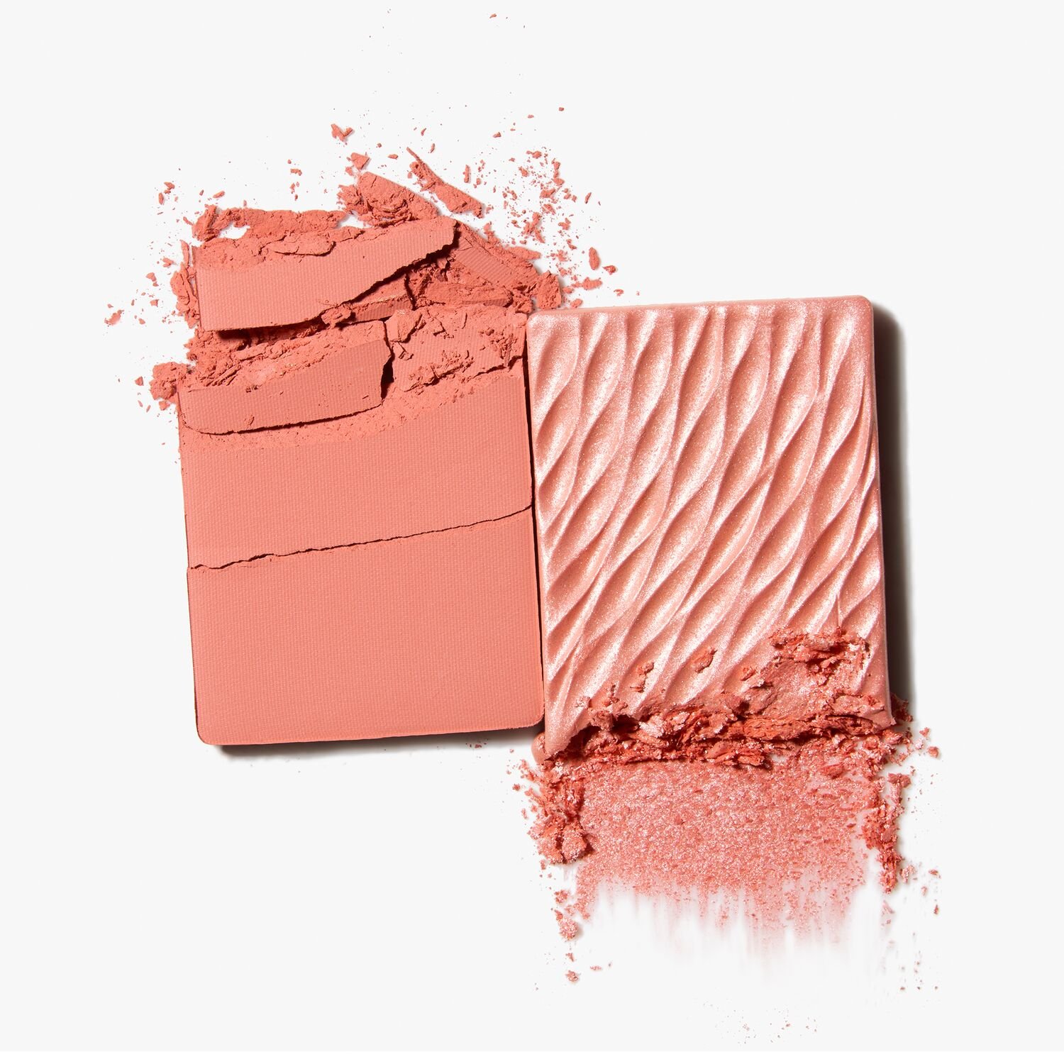 This duo features two finishes for a custom flush: a soft matte blush as well as a luminous shimmer shade.
