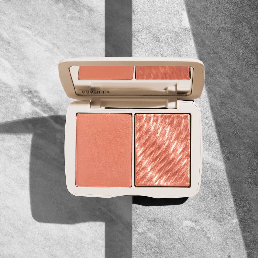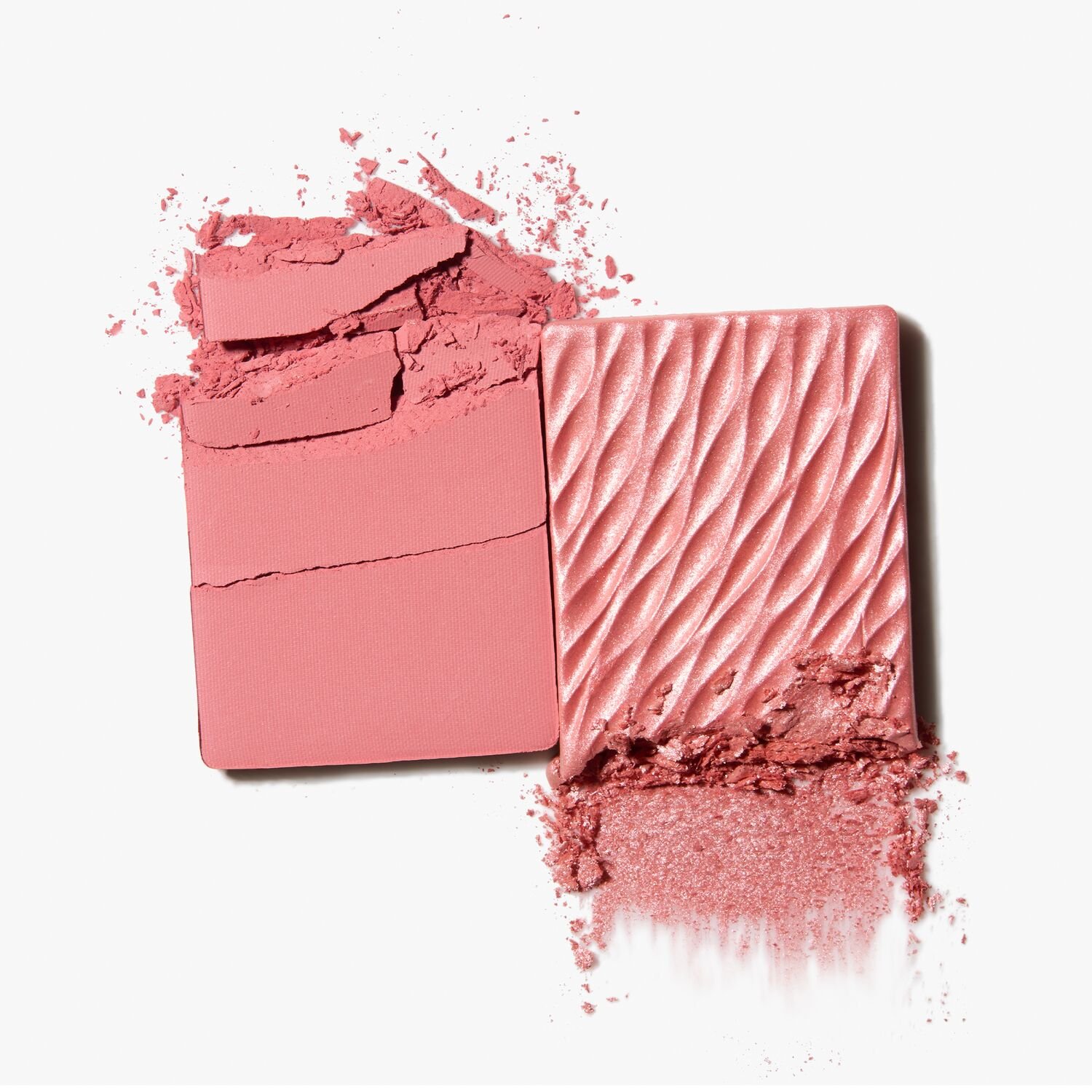 This duo features two finishes for a custom flush: a soft matte blush as well as a luminous shimmer shade.